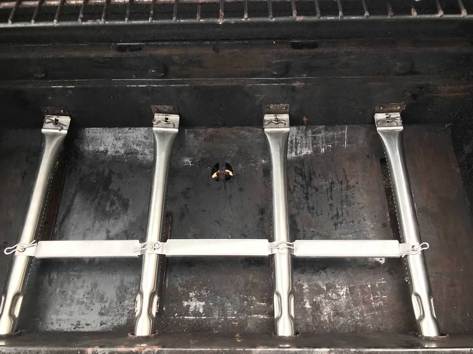 Remove the grill plates and then the fun begins. The gas tubes and crossover tubes may be attached with cotter pins like mine are or they may be attached in some other fashion. So all you should need is maybe a pair of pliers and a screwdriver.