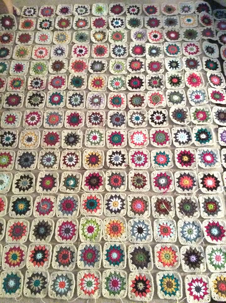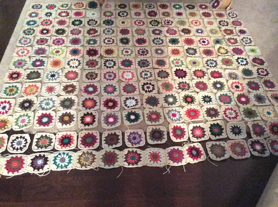 I completed all the squares, once again placing them on the floor so I could get an idea how big the blanket would be.