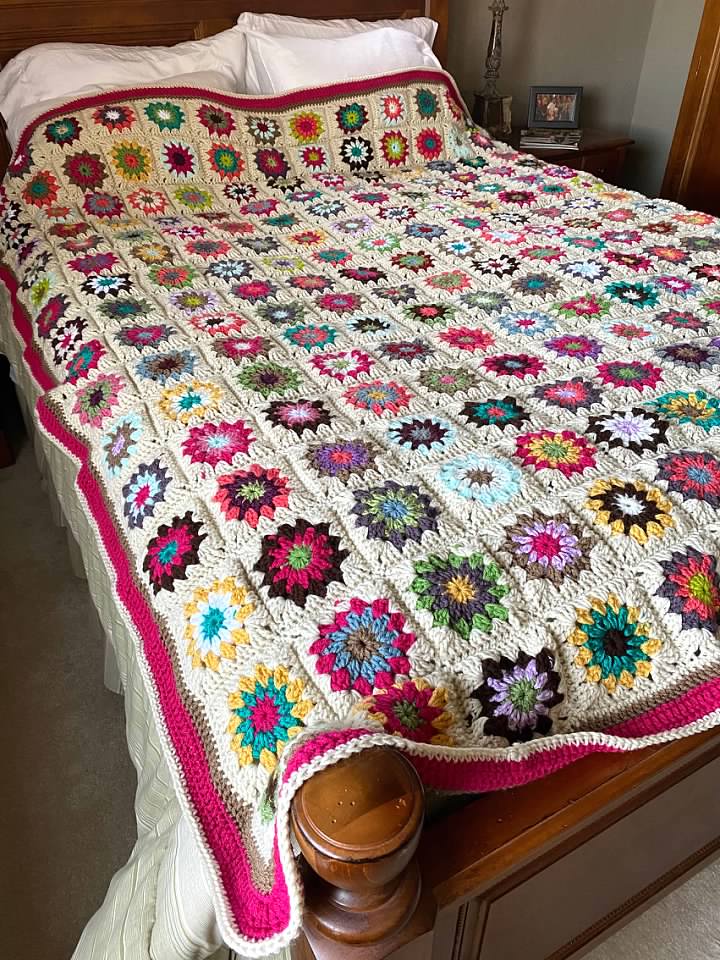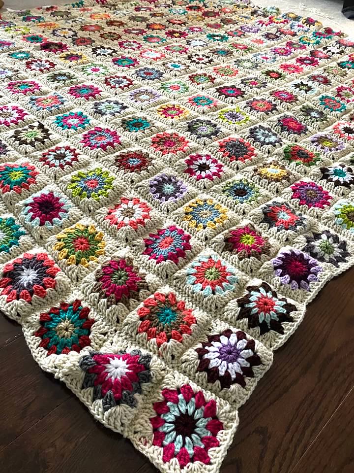 I started this granny flower project in April of 2019. And almost a year later I’m excited to say it’s finished.
