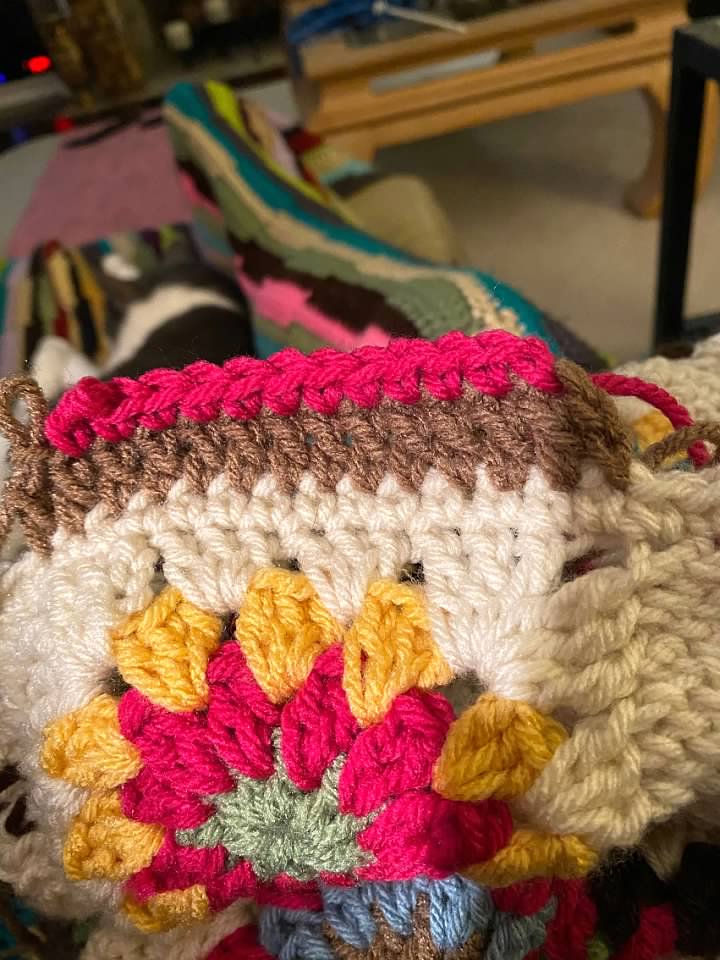 This helps to make the edges of the project look more straight and it’s easy to crochet into if you are adding more border and different colors of border as I did.