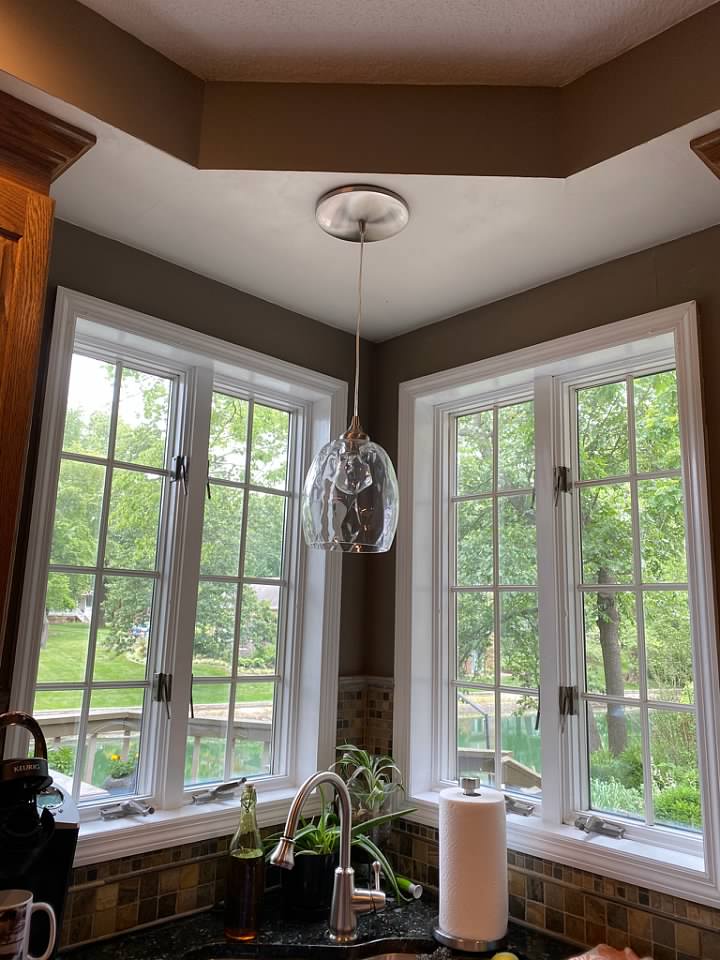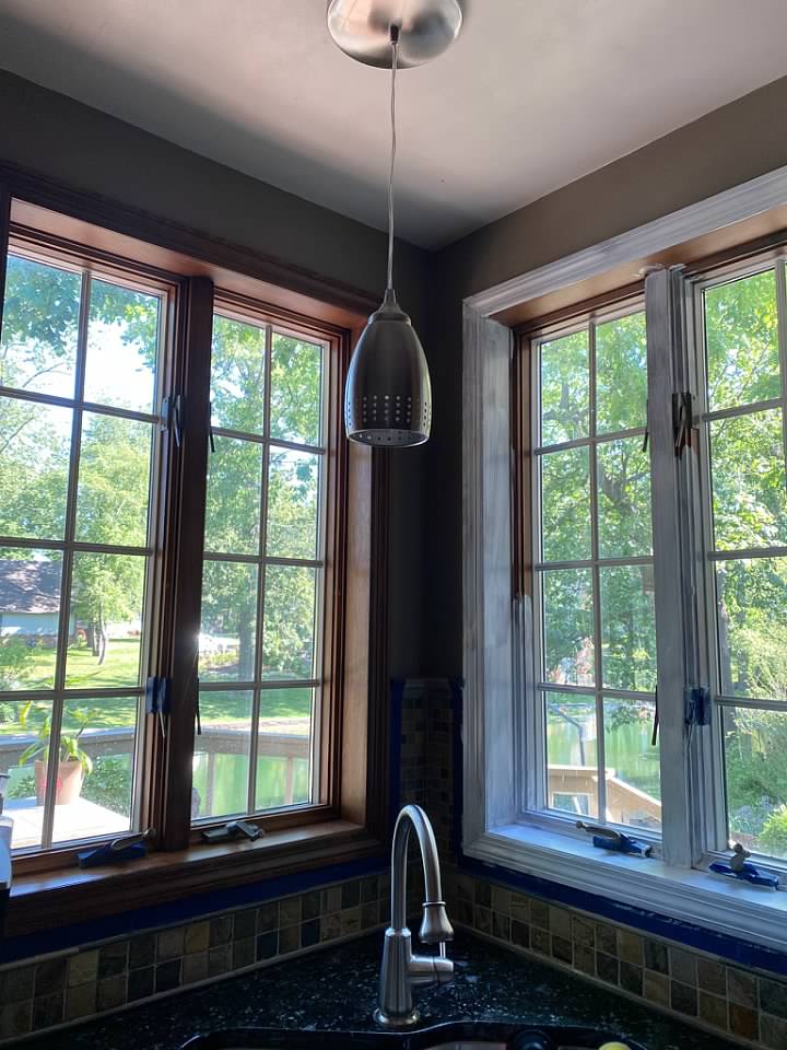 As with all renovations one thing turned into another and painting existing cabinets was only part of the project. We eventually made a large project even larger with having too much time on our hands. We decided to move some furniture around, get rid of some furniture, expand the cabinetry, add new door/drawer pulls, install new lighting and outlets and paint all the existing trim in the kitchen area.