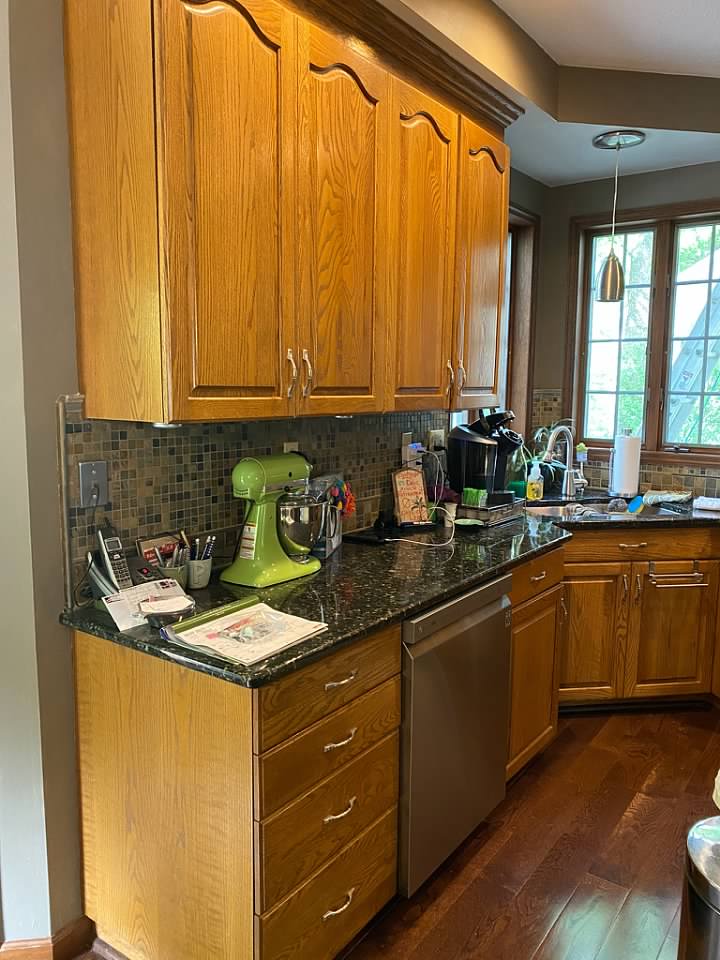 Going with the Hulett Ore Sherwin Williams color for the island was a last minute decision but I think it turned out nice and helps tie in the existing backsplash that we didn’t want to have to tackle and redo. (Paul installed the backsplash years ago and it was quite a project.)