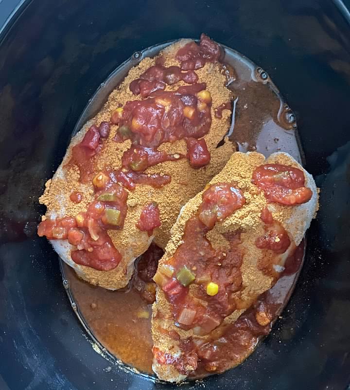 - Using 2 forks and shred the chicken breasts. Stir and enjoy!