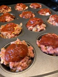 Another way of keeping the points/calories low with meatloaf is to bake them in a muffin pan instead of the original loaf pan that you’d normally use. This keeps the proportions manageable.