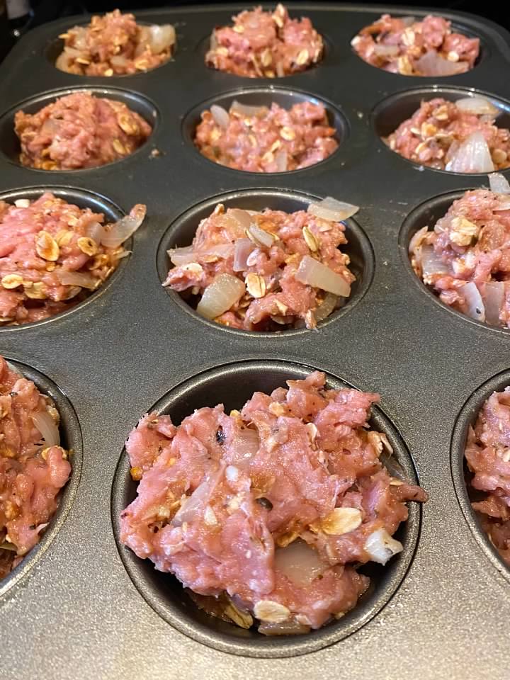 These also work well for a busy weeknight meal. They cook a lot quicker than the loaf pan meatloaf….within half the cook time.