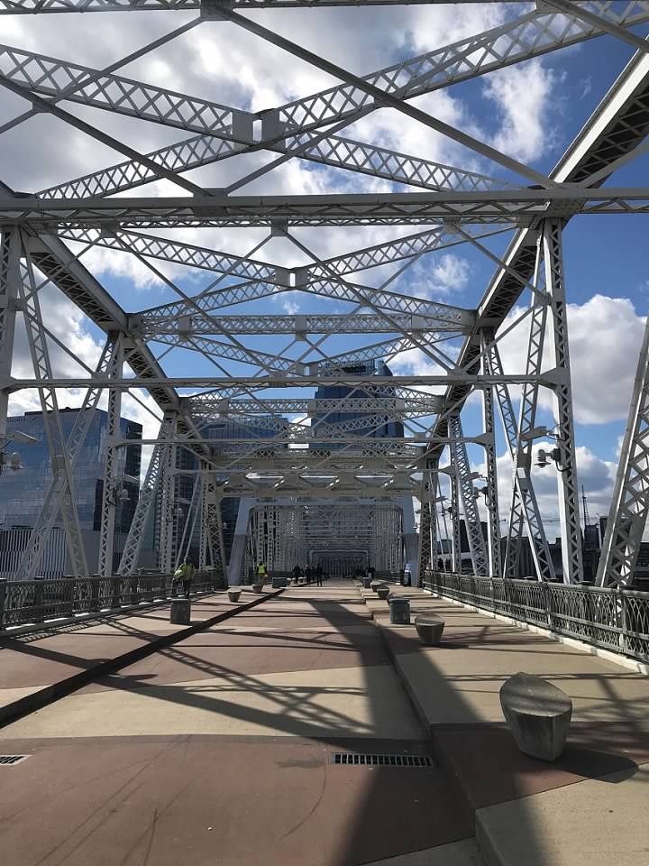 On Saturday, it was a bit warmer, so we used the Shelby Street Pedestrian Bridge to cross the Cumberland River.
