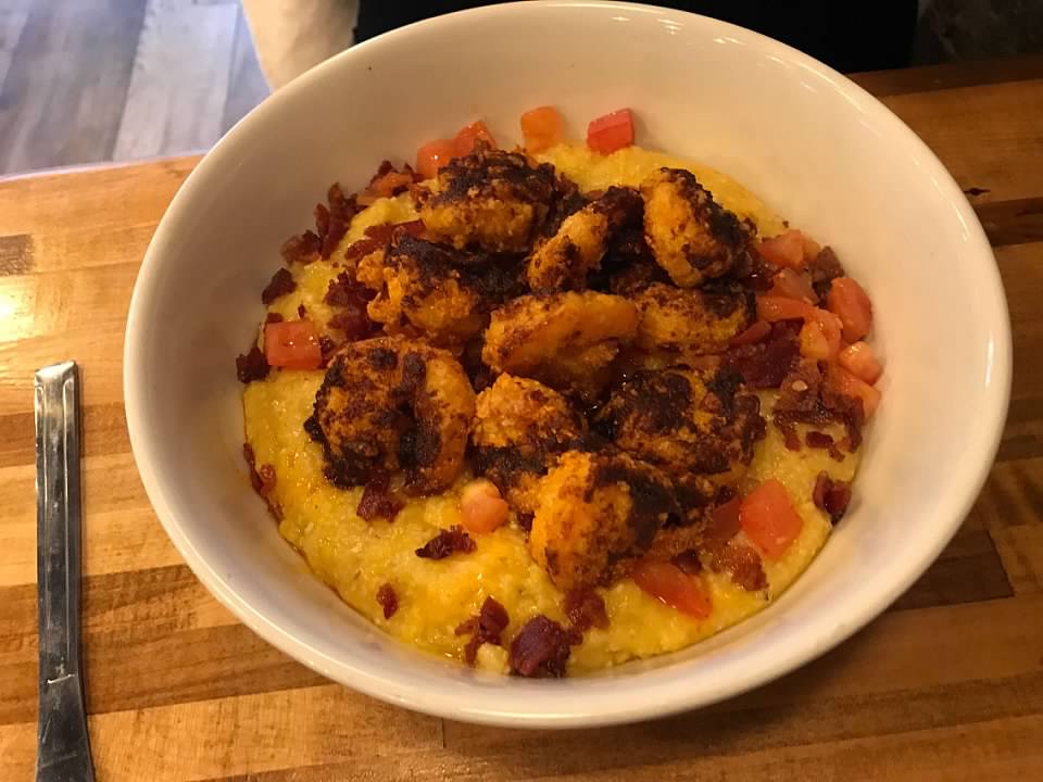 I can’t imagine how hot that one is. The one I chose made my eyes water. Very tasty, but unless you have the stomach for it, go with the medium one called “Not so Mild” instead. Dixie had the hot shrimp and grits – another excellent choice!